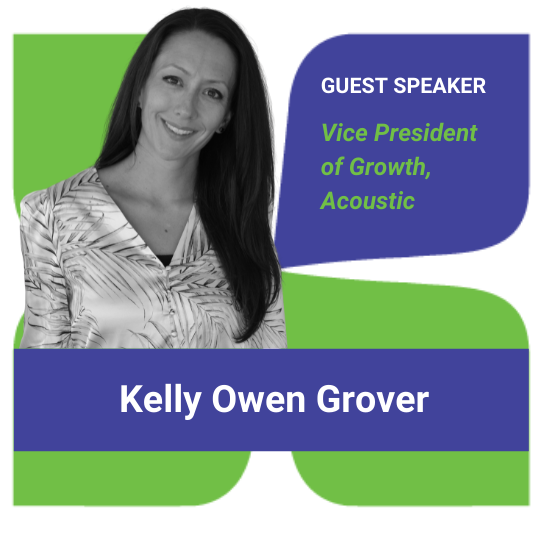 Kelly Owen Grover is the Vice President of Growth for Acoustic, an omnichannel marketing automation company. She has almost twenty years of revenue generating roles, translating aspirational company goals into an actionable go to market strategy. This alignment extends far beyond the customer-facing team and connects financial growth with elevating customer value. She is a global marketing, corporate venture, sales, and strategy veteran, with extensive strategic business planning and execution expertise.